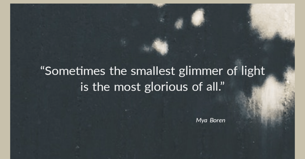 Sometimes the smallest glimmer of light is the most glorious. For me The book The Shack was a small flicker of light, telling me that the darkness was temporary.